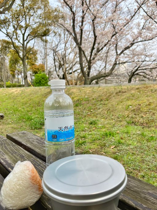 おにぎり持って桜の下でヒトリランチの平日🍙