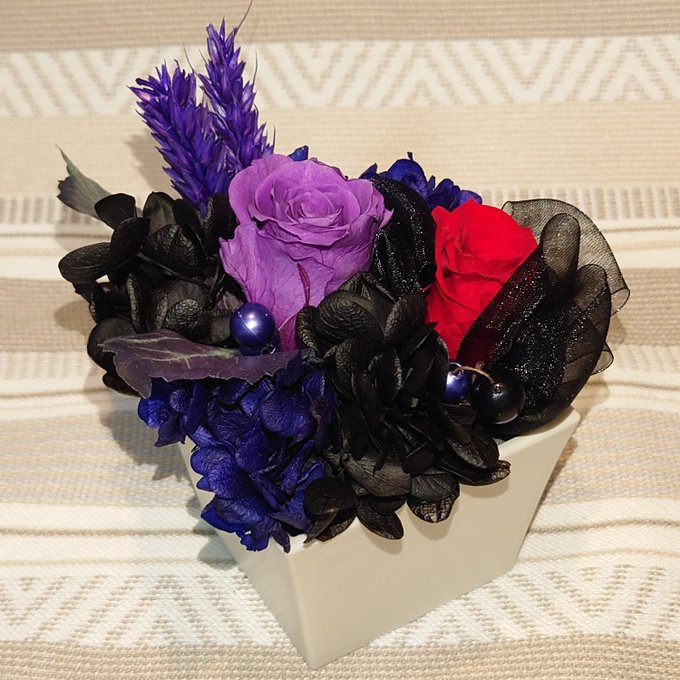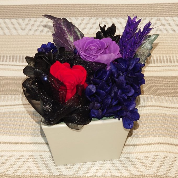推し花でグラデーションの紫で当選した紫皇のイメージプリザーブドフラワーが届いたー!💐(*´∇`*)