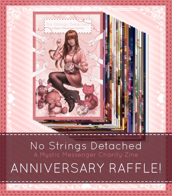 No Strings Detached is a Non-Profit Mystic Messenger digital fanzine focusing on the relationship between custom MCs and canon Mystic Messenger characters!