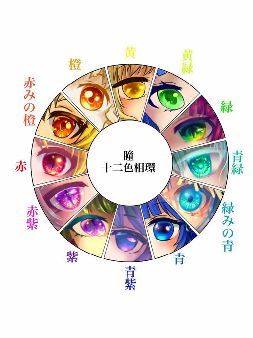 #瞳十二色相環 テンプレお借りしました! 黄色系と緑系の少なさにびっくり... でも楽しかった!