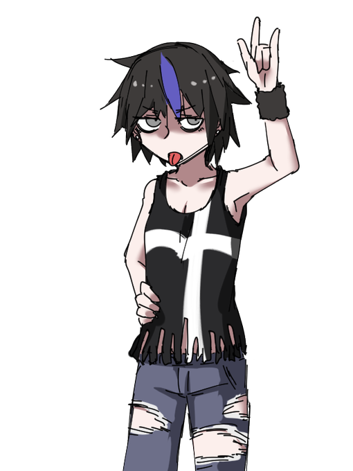 黒髪青メッシュのロックバンド系女子