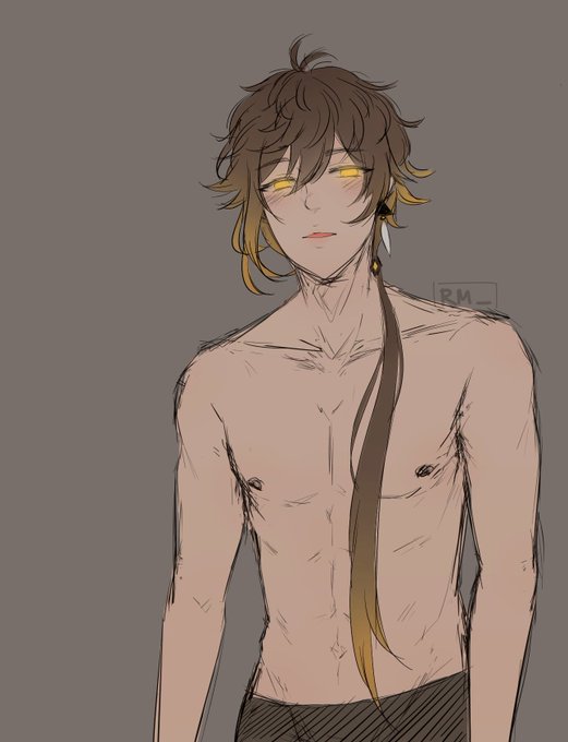 cw// nsfw (kinda..? not really, but just to be sure..) woke up and thought i'd do myself a favor and draw topless zhongli as an offering so that he'll finally come home 💖 #genshininpact #genshinimpactfanart #zhongli