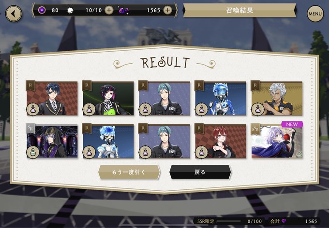 天井ですり抜けたときはどうしようかと思ったけど、次の10連で稀に見る神引きをして大歓喜です😭😭😭😭😭 #ツイステ