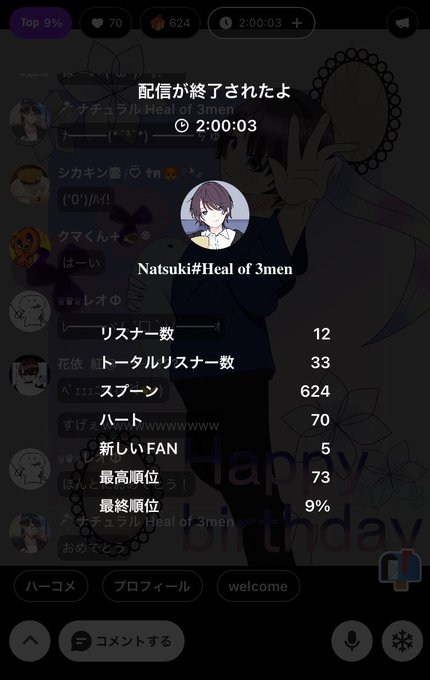 8/18 誕生日枠に来ていただきありがとうございました!ちゃんと感謝言えたかな。SPOON続けられたのは関わってくれたみんなのおかげです。