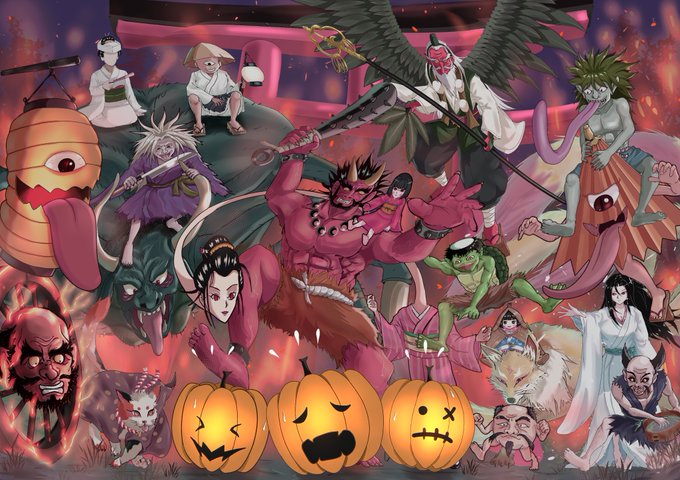 #振り幅を晒す見た人もやる 近い時期に描いた妖怪モチーフのイラスト