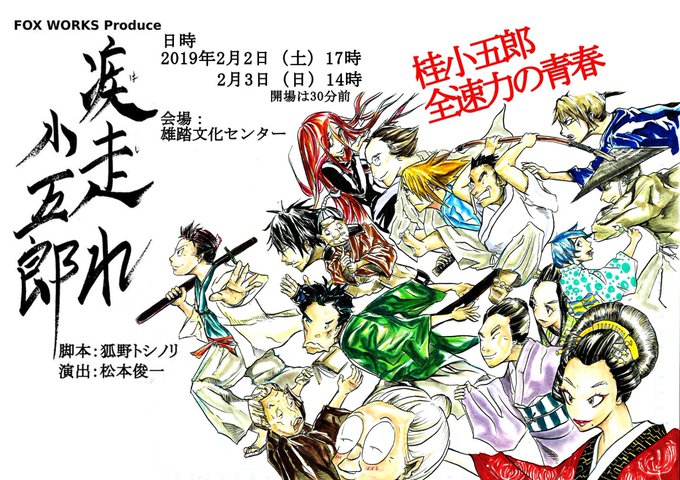 FOX WORKS Produce 【疾走れ!小五郎】 📆日時 2/2(土)16:30開場 17:00開演 2/3(日)13:30開場14:00開演 🏢場所 雄踏文化センター/ 浜松市西区雄踏町宇布見5427 🎫前売(当日は+200円 一般1500円 学生1000円 高校生以下500円 🏠ライブポケットチケットURL https://t.co/7XHTlAY5Qr #疾走れ小五郎