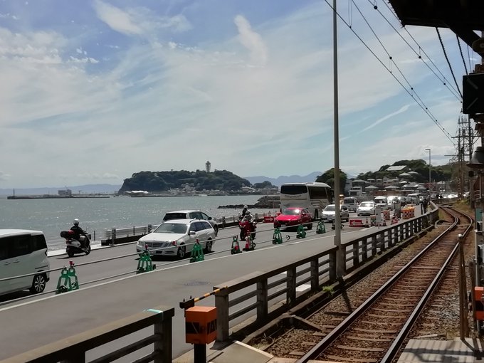 去年描いた江ノ島さんぽちゃん。大好きな景色を背景に描きました。 #江ノ島さんぽ美術館 #江ノ島さんぽちゃん