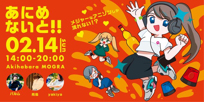 明日2/14【日14時~ #mogra】は #あにめないと 開催!