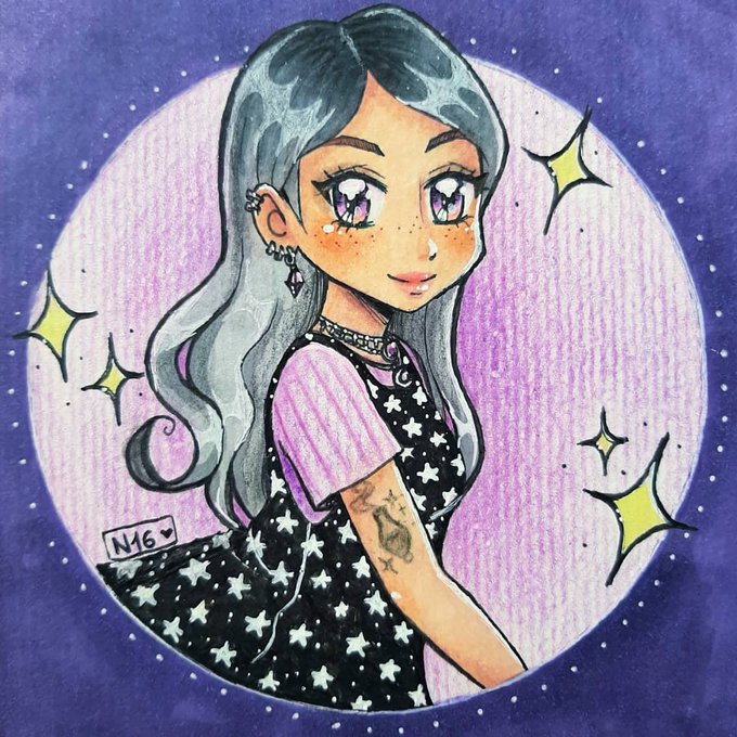 |#ditys #drawthisinyourstyle #traditional #art #myart #lilac #artistsontwitter #anime #animestyle #witchy #stars |