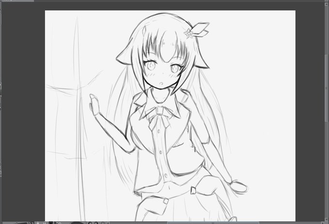 眠たくなってきた~ ちょっとずつだけど描いていってる~ 寝落ちするまで、のんびり描くぞ~"(-""-)"