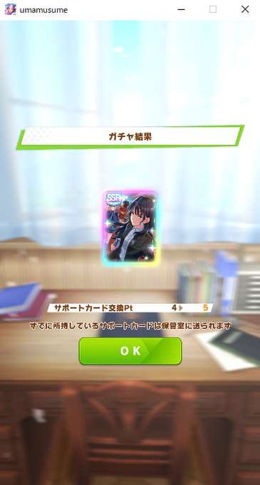 サポカSSRの樫本理子さんが欲しいな~と思い、オハガチャの単発で再び来て下さいました!
