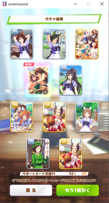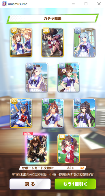と言いながら2022年1月3日の無料10連を引いたら、SSRアヤベとRアヤベ3枚来ました←