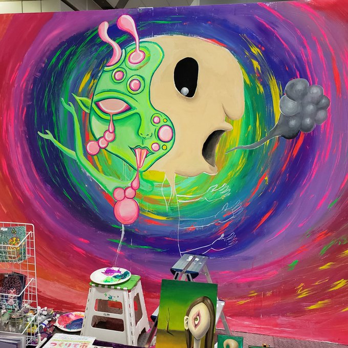 ういりおちゃんとのライブペイント1日目終了しました!