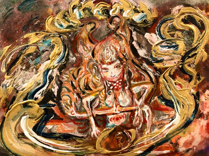 🌃🌉夜っぽいというか、原色が強い印象。『宇宙神秘とかエネルギーの躍動』を表現するのが好きだから🎨