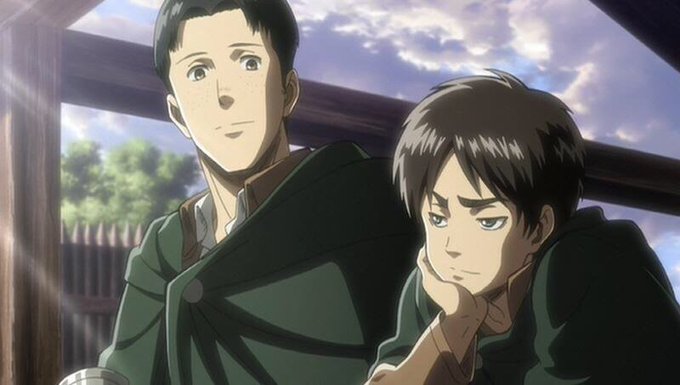 ฉากนี้เหมือนลากกุไปทุบซ้ำๆ มาร์โคบอกเอเรนว่า "อยากรู้จัง ว่าพวกเราจะโตไปเป็นทหารแบบไหน" ส่วนน้องเอเรนก็ยิ้ม อห ความฝันลูกกุอ่ะ อยากเข้าทีมสำรวจมาตั้งแต่เด็ก อยากได้อิสรภาพ ไม่อยากให้ทหารที่ตายไปแล้วต้องตายฟรีเพราะไม่มีคนสานต่อ แล้วดูสิ่งที่โลกนี้ให้กับน้องกุแต่ละคน