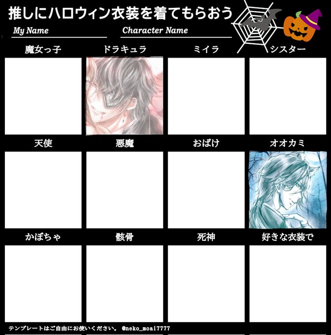 何か素敵な🎃テンプレ見っけ✨‼️あ、そういえばなんですけど昨年こちら(画像2枚目)の🎃企画タグ作ってまして急遽なんですけど今年もこちらのタグ用いてTLに仮装したイケシリキャラ達ばんばん載せて頂けたら幸いです🥰❗
