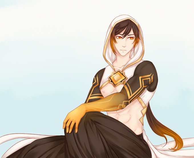 More genshin art~ of course I can't resist the god outfits.. Honestly if Mihoyo doesn't make the chest open on Morax's outfit they're cowards 😂