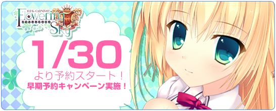 『ALIA's CARNIVAL! フラワリングスカイ』の予約は明日1月30日(金)から! 中の人も秋葉原に様子を見に行く予定ですが、雪の予報が出てるので少し心配です。 #nanawind http://t.co/b9en9WPWNL