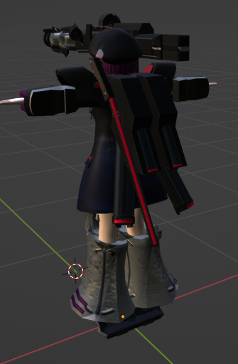 前面をゴリゴリにして背面はシンプルに! 足と腕のデザインが決まらんなぁ、うむむ 今日のblender終わり!!