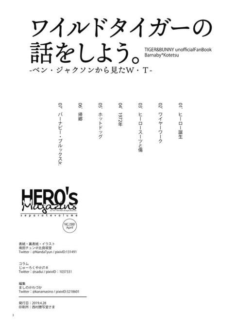 スーパーヒーローショウ2019お品書き&新刊サンプル #兎虎 #腐向け #スーパーヒーローショウ2019 https://t.co/CIduBlmCNU