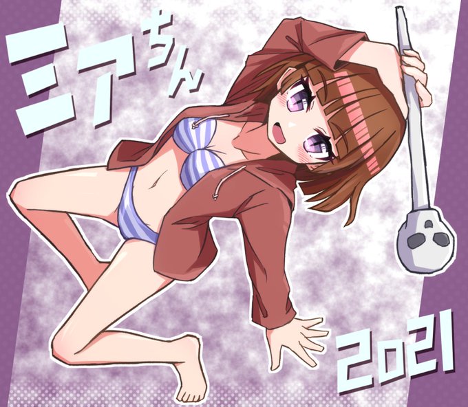 今年は一枚だけと思ってたのですが、当日になってお祭りを見ていると…やはり水着ミアちんも描かねばという気持ちになっていました。