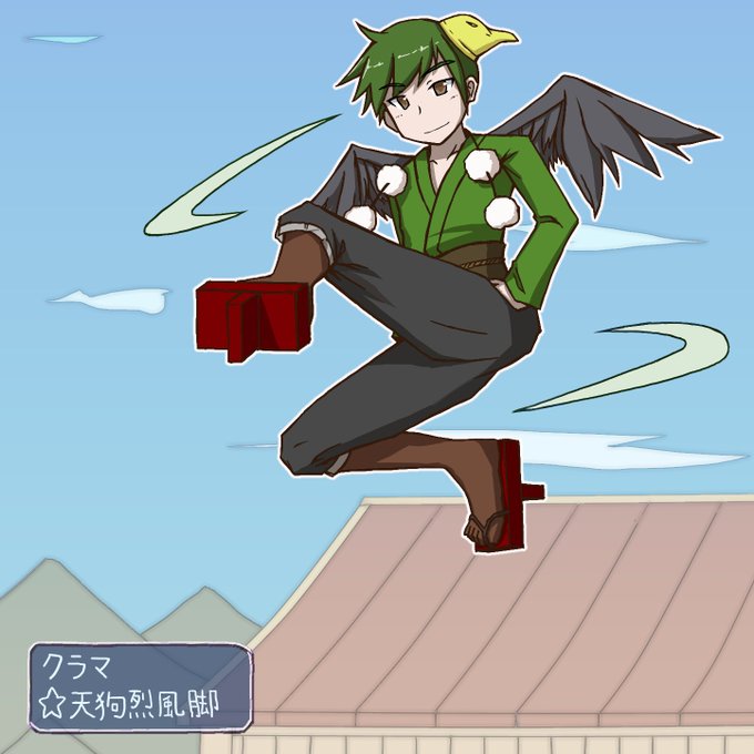 クラマ「⭐︎天狗烈風脚」#ざくアクアート 戦闘アニメで軽快に飛び回ってるクラマくんがカッコよい