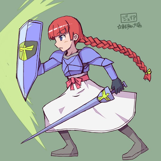 ジュリア「⭐︎献身の大盾」 #ざくアクアート 設定資料集読みながら描いてたらおさげが長くなってしまったー