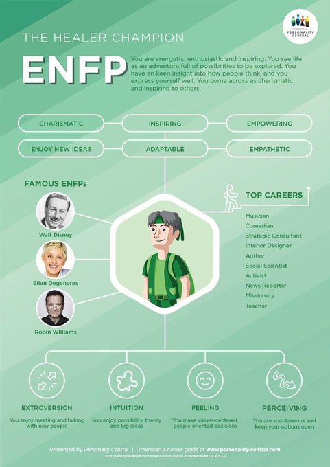 One of the easier ones to type in my opinion. I am a big fans of ENFPs - they’re one of the best human beings and are really nice to be around.