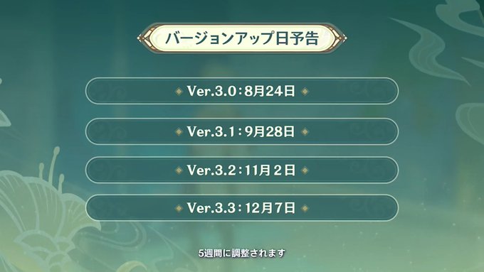 バージョンアップ期間短くなったり、聖遺物廻聖の種類増えたり情報量多いけど、とにかくスメール楽しみです。