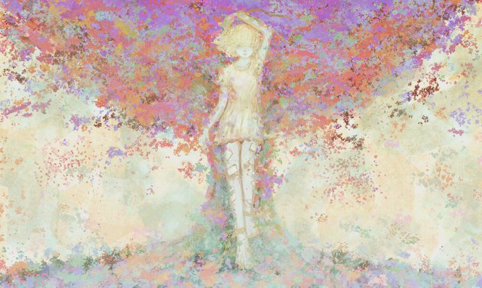#イラストを4枚貼ると秋風に乗って絵柄を好いてくれる人の元へ届くらしい 女の子と植物を描くのが好きらしい、、