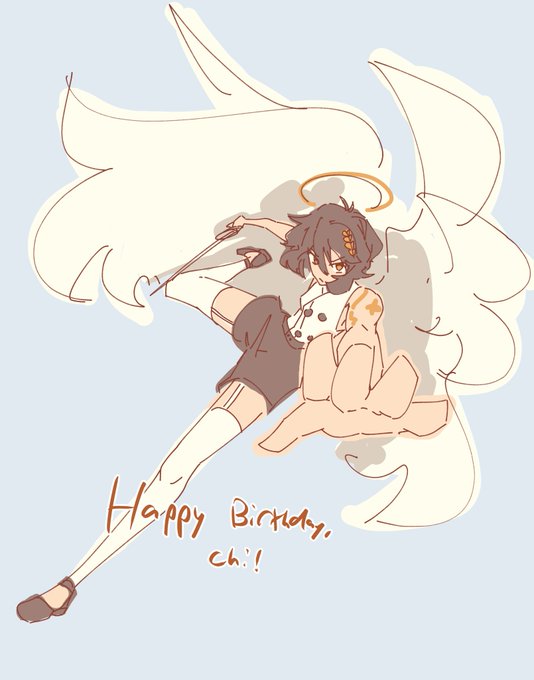 for #OCeptember's crossover prompt, i swapped peck's and @/chiisagi_art's (angel ver.) chiisa's main traits