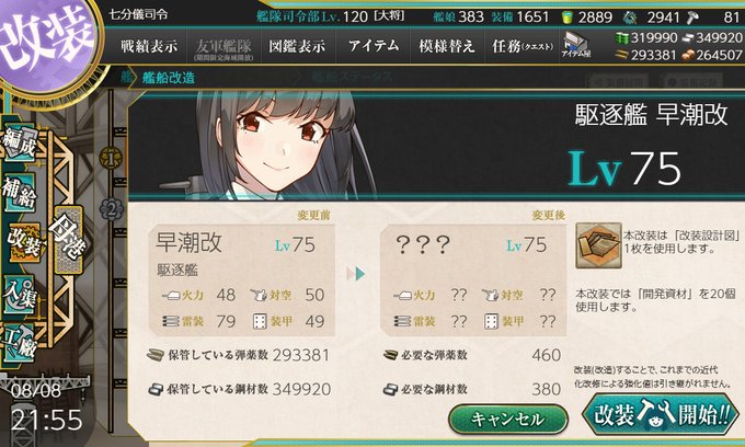 8/8は「大和」の進水日。画像は順に【改二重】、【改二】、【改】、【無印】です。世界最大の超弩級戦艦。凛とした大和撫子で、妹の「武蔵」と対照的です。戦闘能力及び消費資材、その全てが最高クラスで鎮守府における決戦兵器です。【改二】実装により、強力な特殊攻撃が可能になりました。 #艦これ