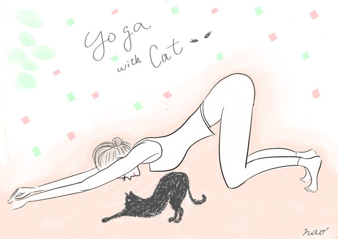 大好きな猫の伸びのポーズ💕猫と一緒にしたらきっと楽しいだろうな〜というイメージで描きました。