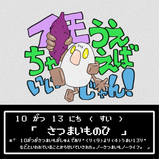 【 #今日は何の日 1292日目 】 #10月13日 「 #さつまいもの日 」 #さつまいも #芋 #イラスト #芸術同盟 #絵描きの輪 #アトリエの系譜 #イラストレーター #イラスト好きな人と繋がりたい #絵描きさんと繫がりたい