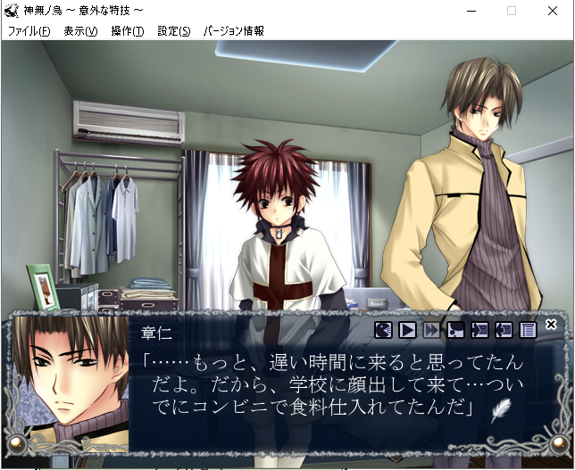 今は真部章仁っていう下のツンデレさんを落としてて、この人のルートは相当ライトな印象。その進め方次第で途中にハッカン×レンジャクの流れが見られる構成ですね。