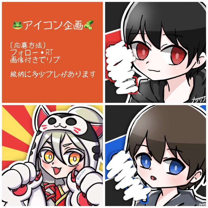 はじめてアイコン企画やります! 絵柄はだいたい画像の感じですがブレがあります👐 🔫応募方法 @Nat_kyus のフォロー このツイートのRT 描いてほしいアバターもしくはイメージ画像をリプ 応募期間は10月15日まで 当選者は2名の予定です✌️遅筆なので気長に待っていただける方はぜひ参加してください🐸