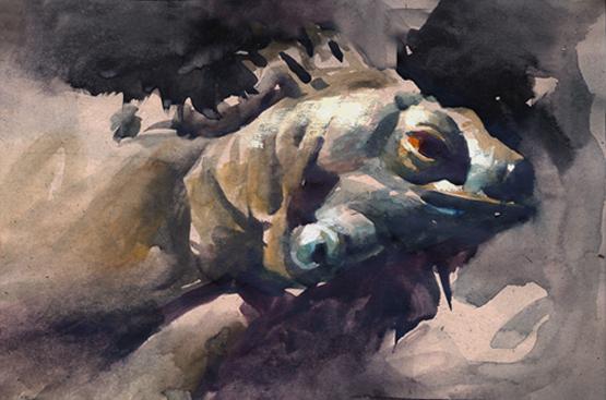 A watercolor quick-sketch. There was this great light coming through the clouds, had to pull off the road and paint!