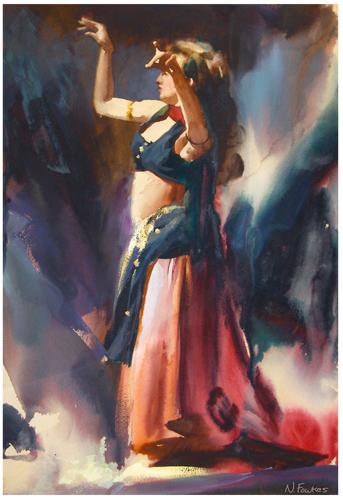 Dancer in watercolor on arches cold press watercolor paper plus a detail crop in.