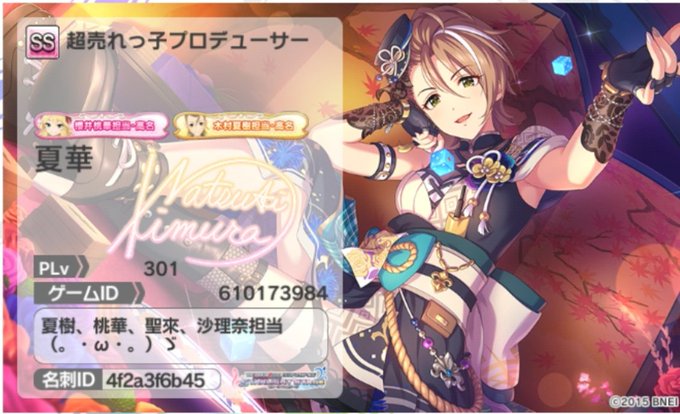 木村夏樹、櫻井桃華担当の夏華です。さらにこの度、水木聖來さん、松本沙理奈さんも担当する事に決めました!