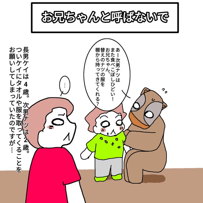 【お兄ちゃんと呼ばないで】 「お兄ちゃんなんだからしっかりして!」とかは絶対言わないようにしてきたけど、「お兄ちゃん」と呼ばれること自体イヤだったみたいです😣 すごく気をつけます。 #育児漫画 #4歳 #男の子ママ #保育園 #育児絵日記 #ワーママ