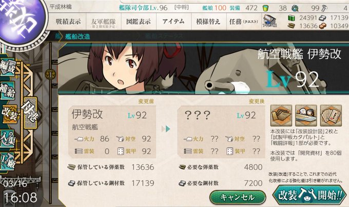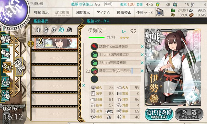 やっと伊勢姉を改二にすることができました…!良かった…良かった…!