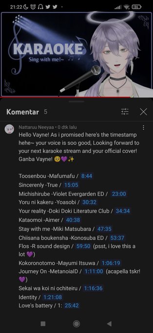Really amazed with his voice ueee, He's soooo goood!!! 😭💜✨ this the one karaoke that i put on the loop until now! i really hope that he will do a actual cover kskshs;;💖 Ganbaa Vayne!🕊💜✨