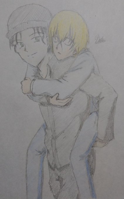 そして色鉛筆では表現出来ても絶対カメラで撮ると分かんないな、ってことでデジタルにしたけど、下描きのれーくんの表情も可愛いから見てください。