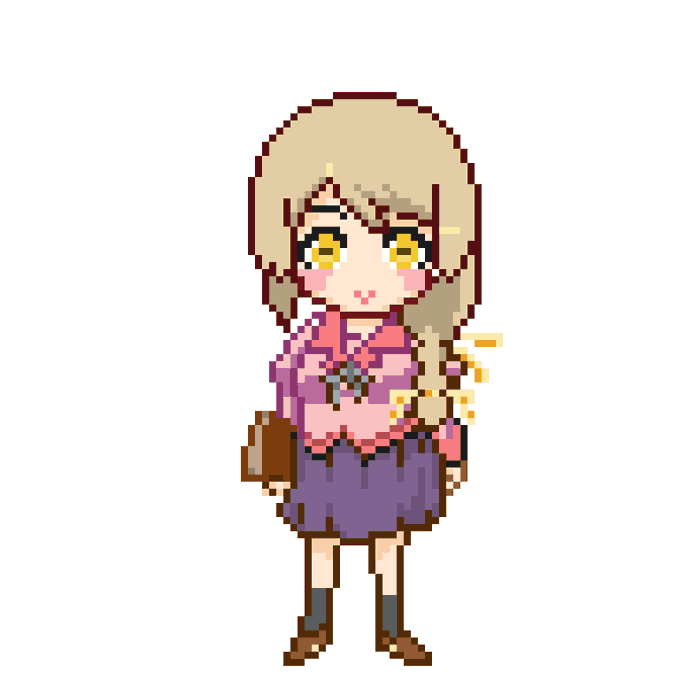 おる坊さん(@MSBWf10jTeIiIGe )からアイディアを貰って描きました!物語シリーズの羽川翼コスプレをするちゃんママを96×96のドット絵で描きました!右には、眼鏡をかけたバージョンもあります。