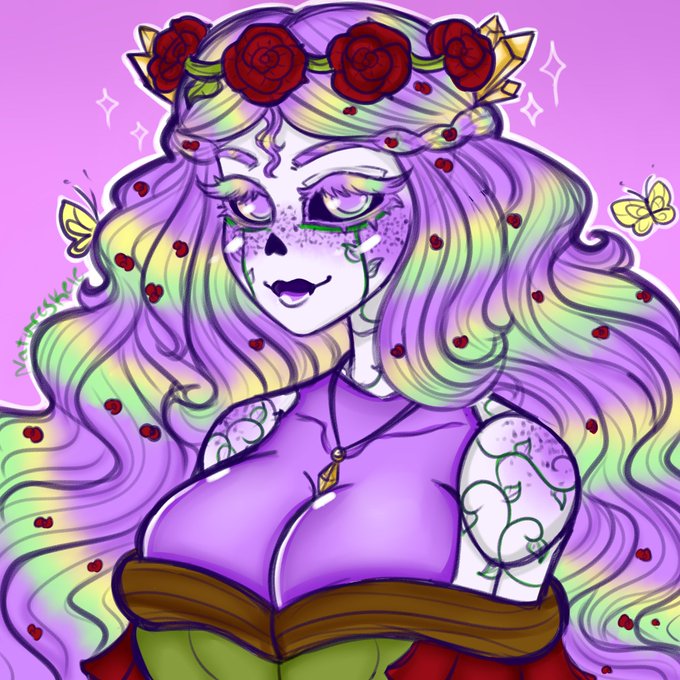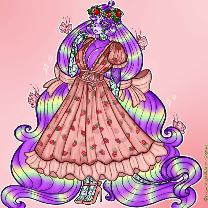 I was very dedicated to making her flowercrown accurate to the point I used the actual colors from a picture of strawberries and the blossoms 🌼