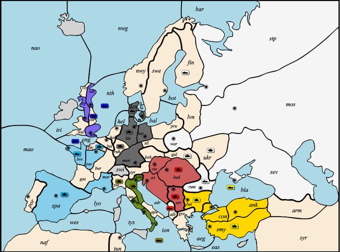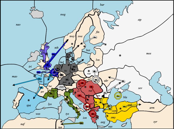 1902年春(3ターン目)終了 行軍結果 陸と北欧が楽しい #アイマスディプロマシー