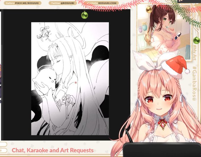 Day 19 of DDD goes to granny Rosu! Or well, today it's santa Rosu. Rosu's art is amazing and her streams are super chill and comfy.