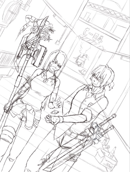 1)ざっくりキャラと背景描く