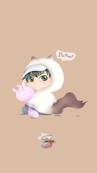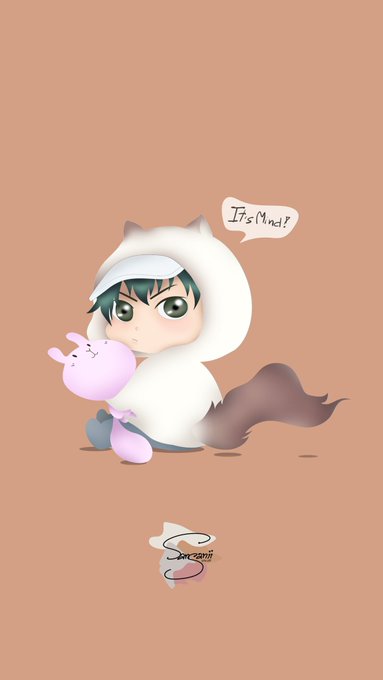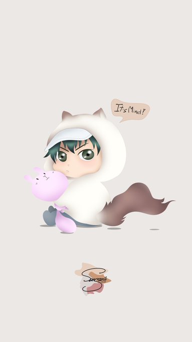 Ryoma in Karupin costume and hugged the doll he caught for Sakuno-chan. (Ryosaku couple pic without saku🤣)
