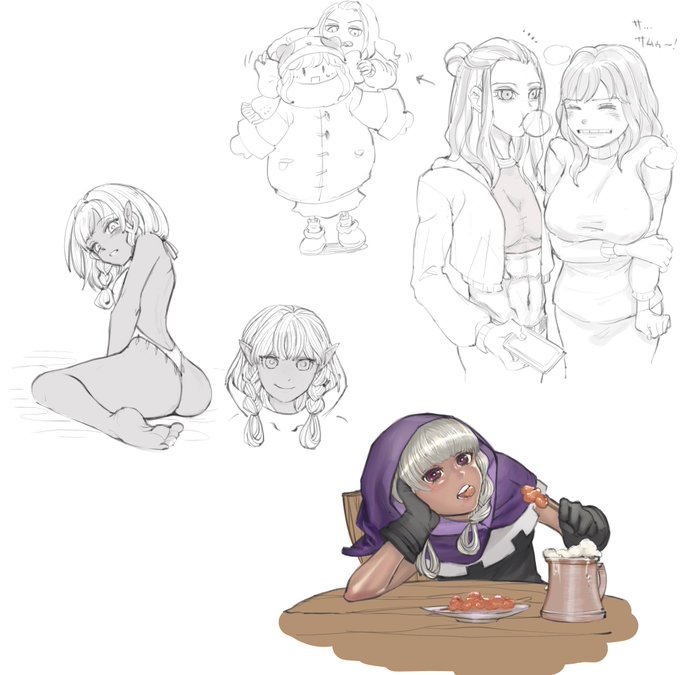 天使の名前はジーナ。罪の精算として2人で地上でお仕事してたりする。下は無関係の我が家のうさんくさやかまし褐色エルフのナダちゃん(愛称なだちょ)の落書きっていうか全体的に落書きです。